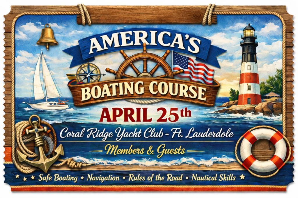 Your CRYC Sailing and Watersports Foundation is sponsoring a safe boating course this Saturday, April 25th, 8:00-4:30, in the Commodore’s Lounge. Taught by member and certified instructor Hal Burke. Earn your NASBLA and Florida Boating Credentials. Perfect for kids and new adult boaters. Get insurance discounts. Lunch included! Use code BROWARD26 for a $40 discount. Follow these links to register.